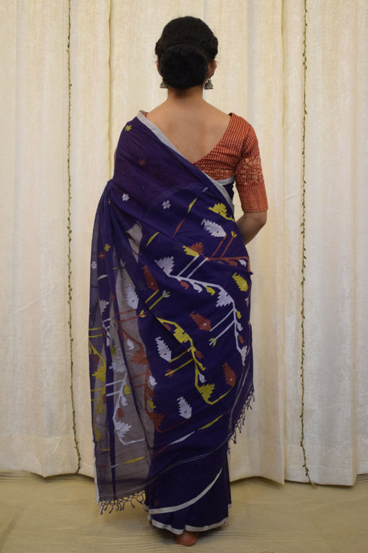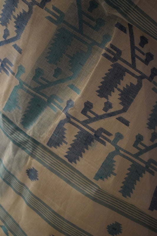 Ujjwala: White & Blue Cotton Jamdani Saree