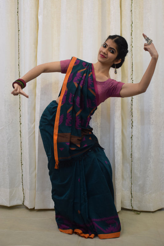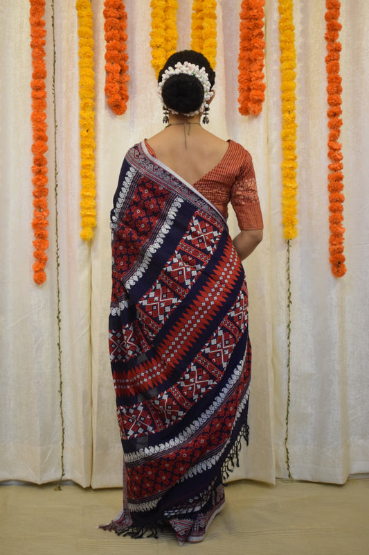 Takshvi: Dark blue Sambalpuri Nabakothi cotton saree