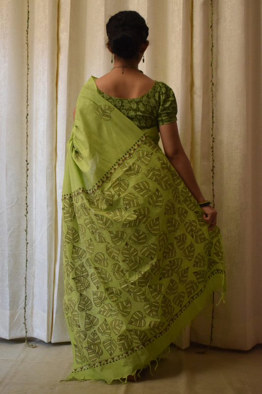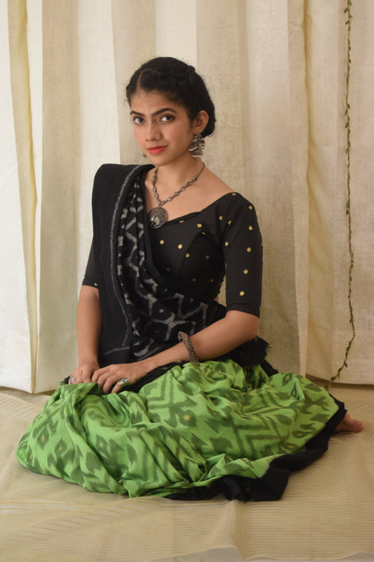 Gārgi- Green Cotton Pochampally Ikat Saree