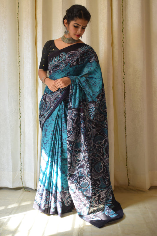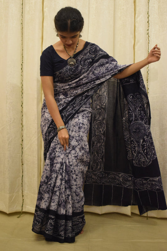 Neeladri- Midnight Blue Cotton Batik Saree