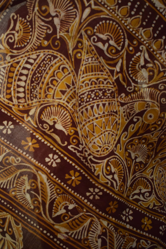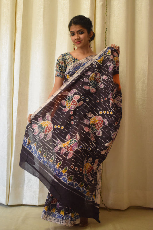 Santiti- Deep Brown Cotton Batik saree