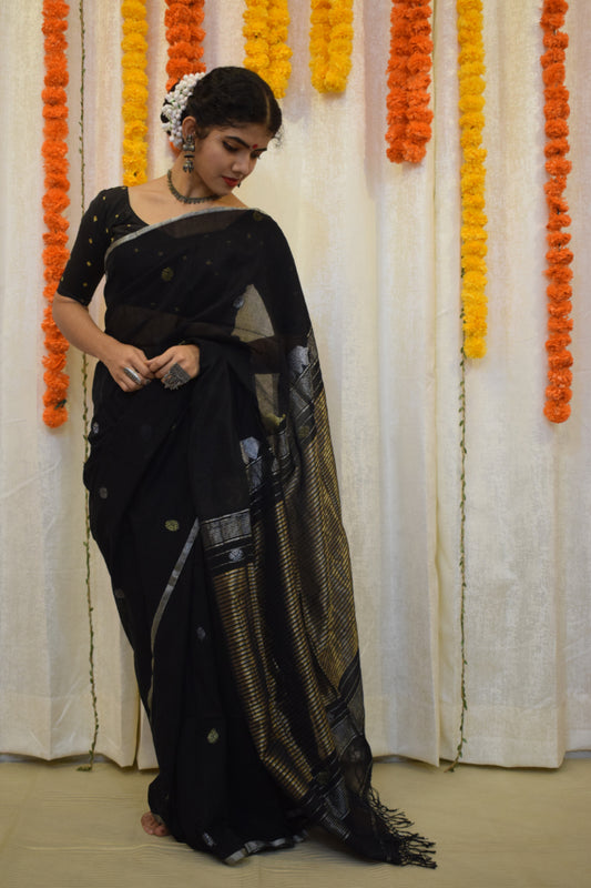 Krishnāh: Black Begumpuri Cotton Saree