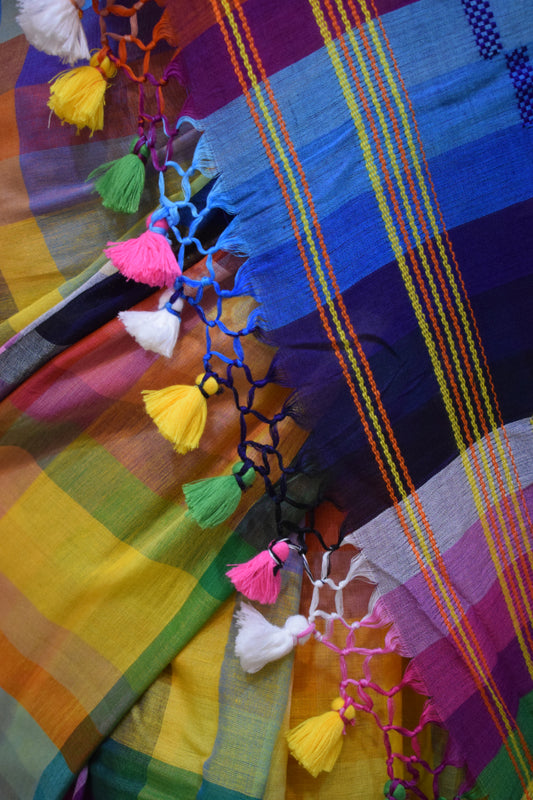 Indradhanush: Multicoloured Dhaniakhali Cotton Saree