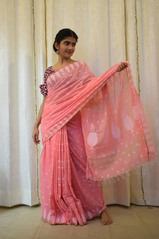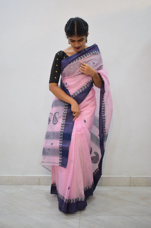 Aeindri- Pink & Grey Cotton Tangail Saree