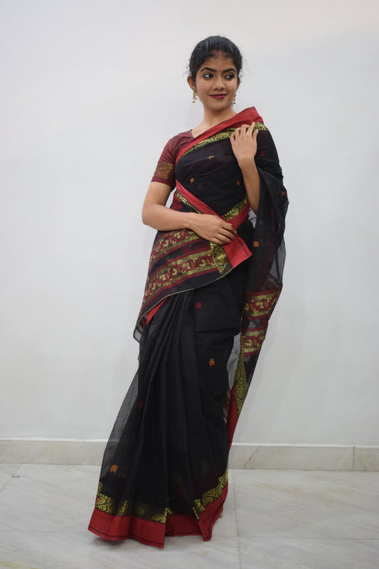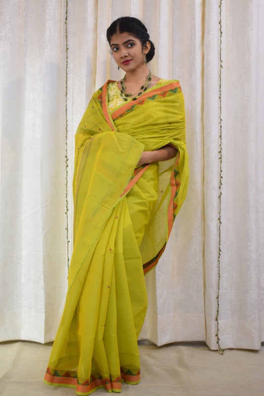 Dhananyā- Red & Yellow Dhaniakhali Cotton Saree