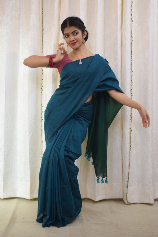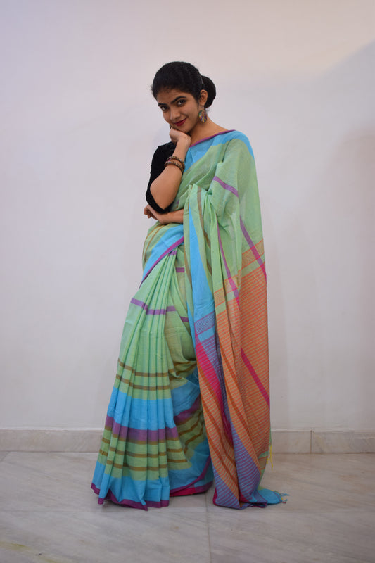 Leepakshi: Teal Blue Chettinadu Cotton Saree