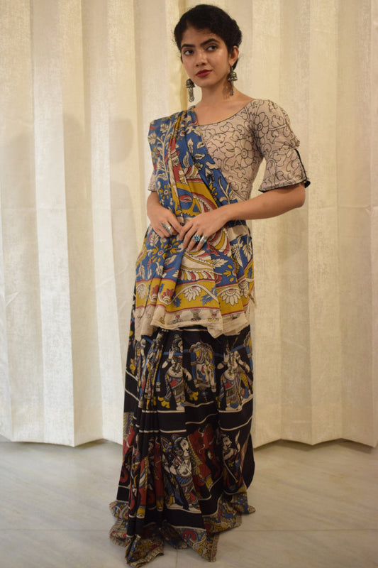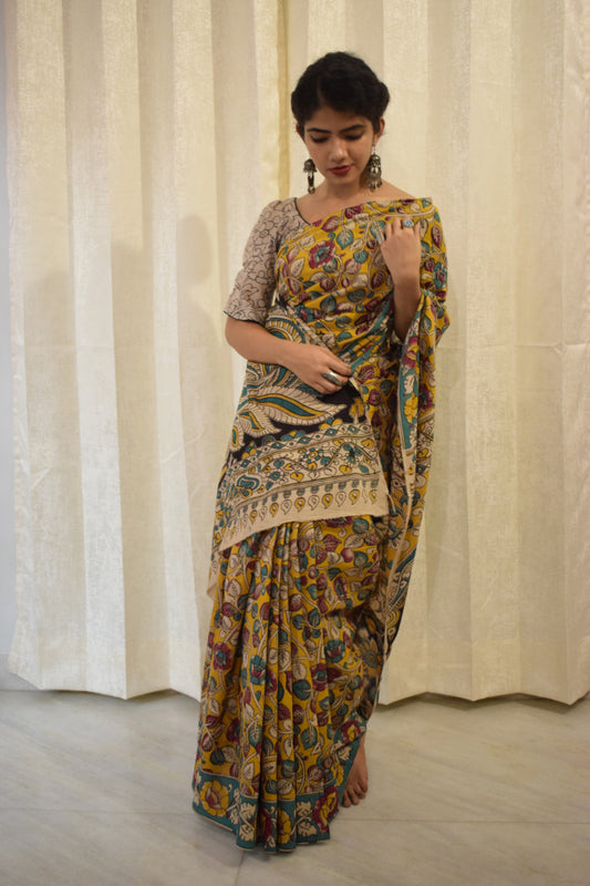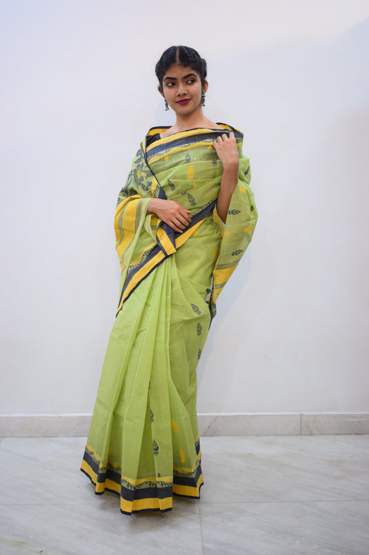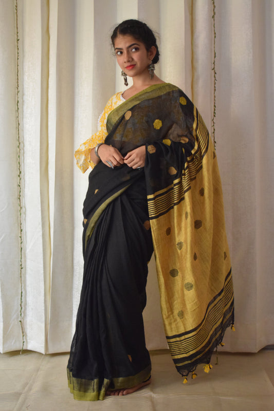 Manasvi- Black & Yellow Cotton-Linen Jamdani saree