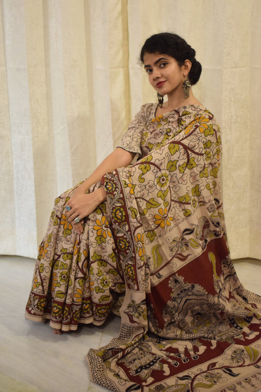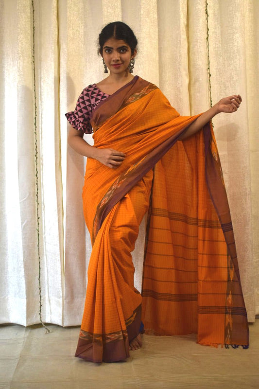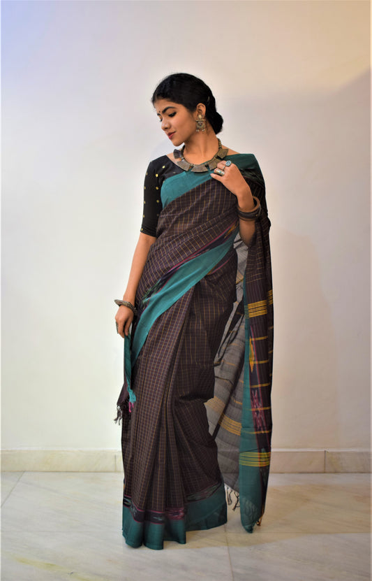 Dhāritri- Earthy Brown Cotton Ikat Saree