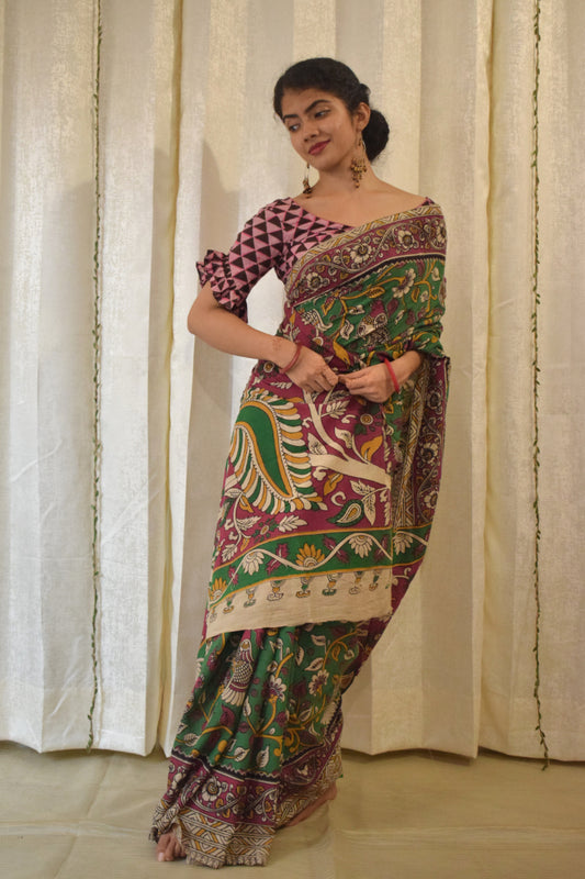 Sold outĀranya: Green Cotton Kalamkari Saree