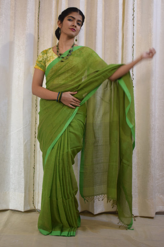 Jayita: Olive Green Khadi Cotton Saree