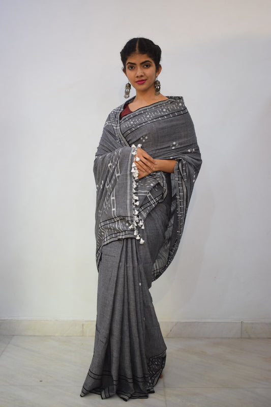 Brindā- Grey Khadi Cotton Jamdani Saree