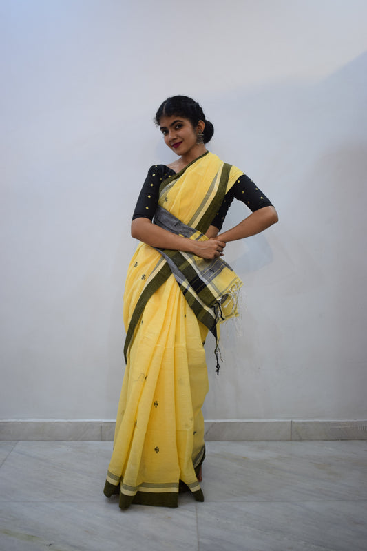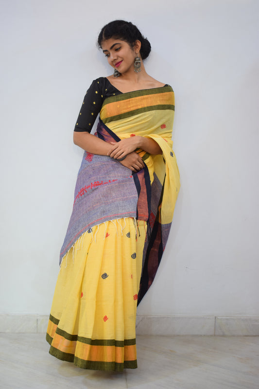 Tānisi- Yellow Khadi Cotton Jamdani Saree