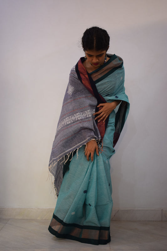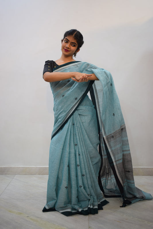 Jaladhijā- Blue Khadi Cotton Jamdani Saree