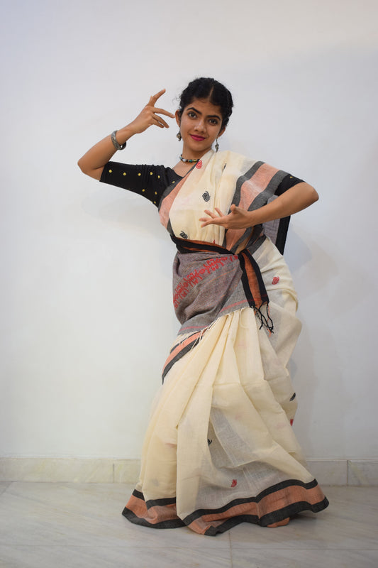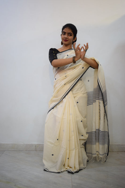Hansikā- Off White Khadi Cotton Jamdani Saree