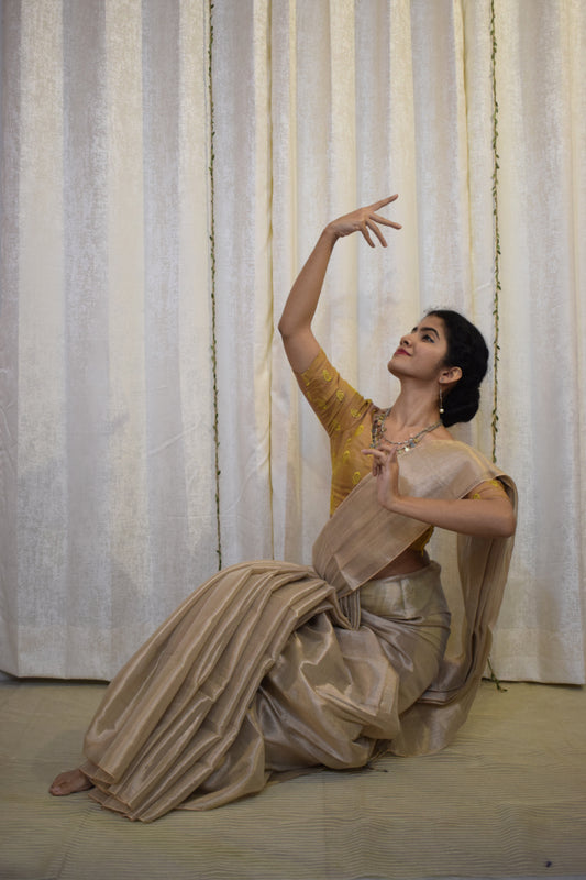 Anudeepti: Sunshine Gold Mul-Zari Tissue Saree