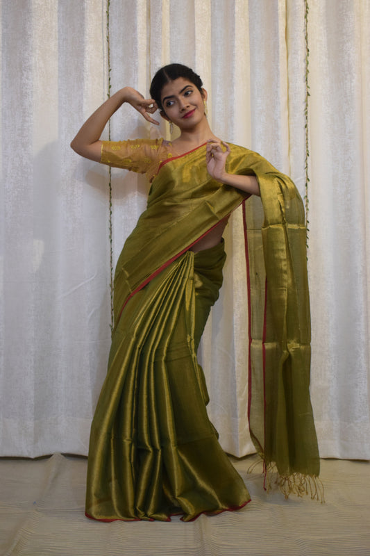 Amrapali: Olive Green Mul-Zari Tissue Saree