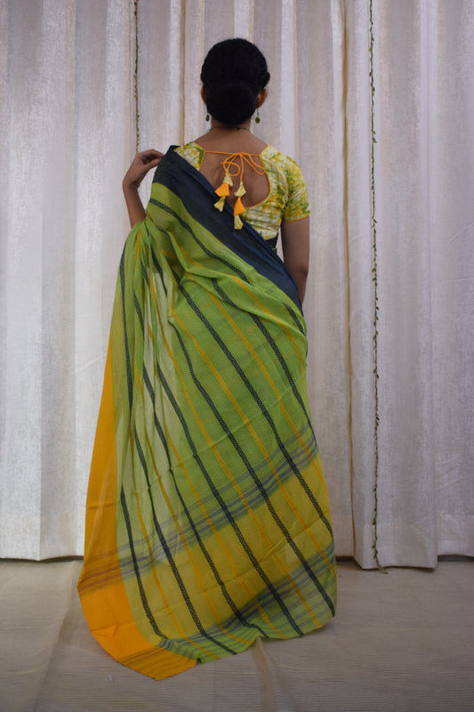 Namasya: Pale yellow, white & green Dhaniakhali saree