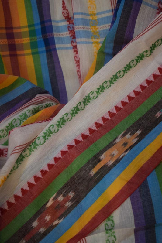 Indradhanush: Multicoloured Dhaniakhali Cotton Saree