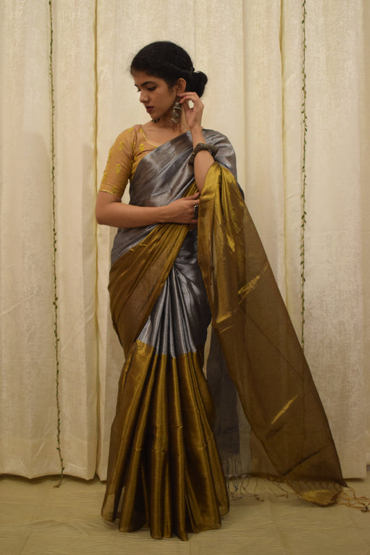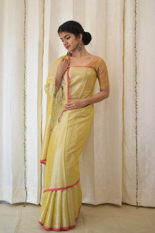 Ābhā: Subtle Gold Zari-Linen Tissue Saree