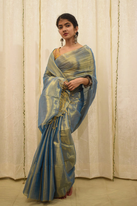 Devkanya- Sapphire Blue Mul-Zari Tissue Saree
