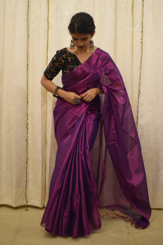 Tilottama- Magenta Mul-Zari Tissue Saree