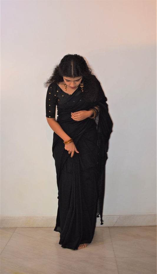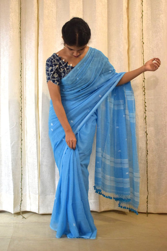 Gangotri: Cobalt Blue Mulmul Buti Saree