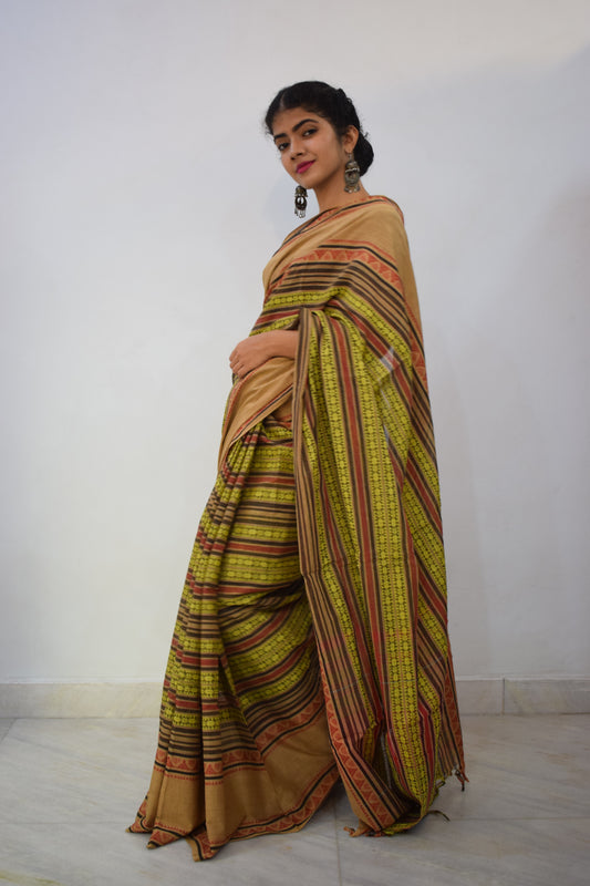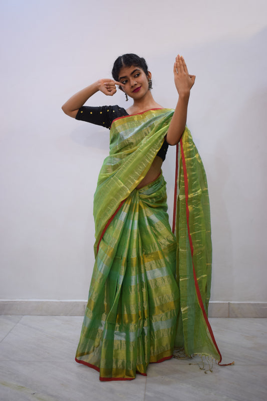 Āshirya- Green & Red Dhaniakhali Cotton Saree