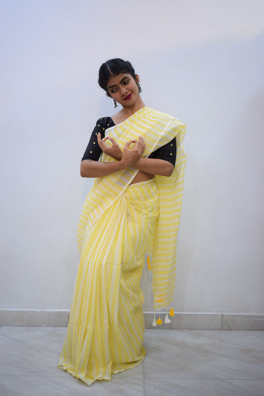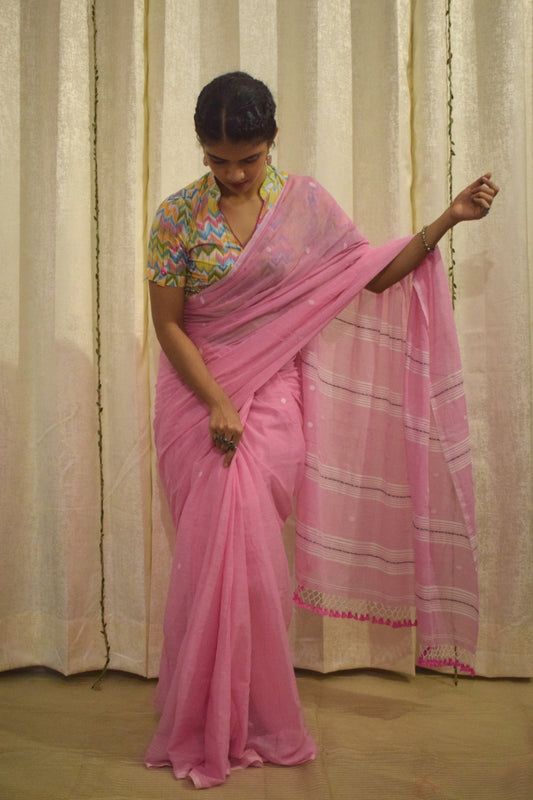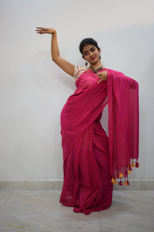 Vallāri- Fuchsia Pink Mulmul-Zari Stripes Saree