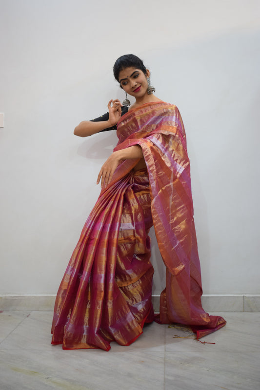 Arunimā- Copper & Pink Mul-Zari Tissue Saree