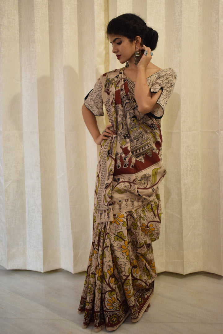 "The art of Kalamkari beautifully unfurls on the six yards of a saree, making it a wearable masterpiece." - Sabyasachi Mukherjee